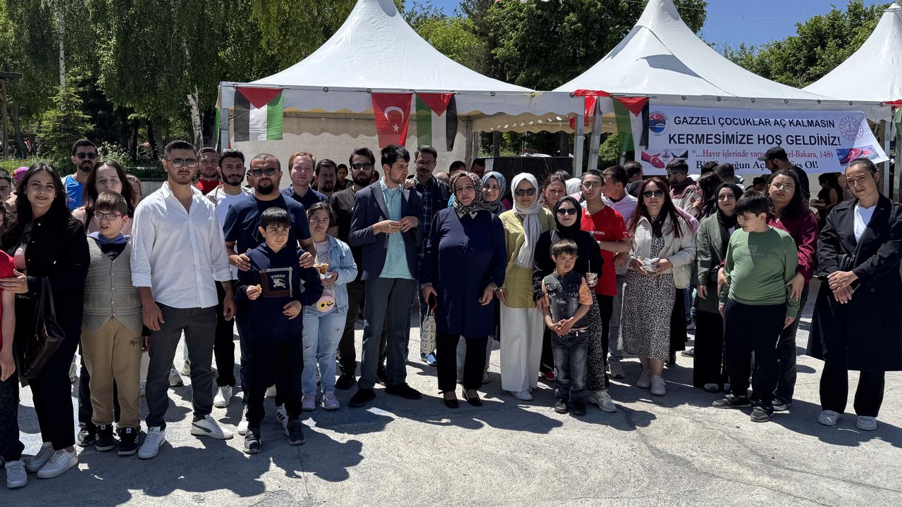Öğrenciler, öğretmen ve velilerin desteğiyle "Nehirden denize özgür Filistin" sloganıyla Milli Egemenlik Parkı'nda kermes açtı.