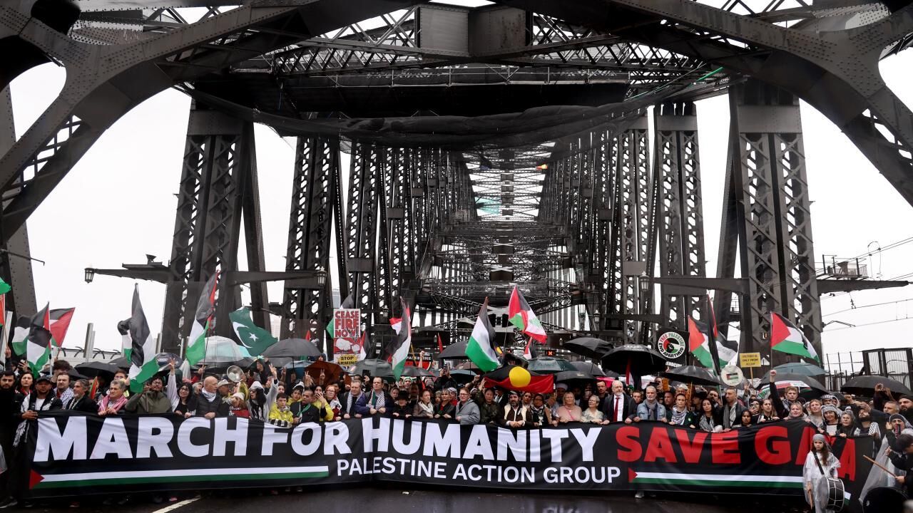 Avustralya Yayın Kuruluşunun (ABC) haberine göre, Filistin’i destekleyen Avustralyalılar, yağmurlu havaya rağmen Sydney Liman Köprüsü’nde toplandı.