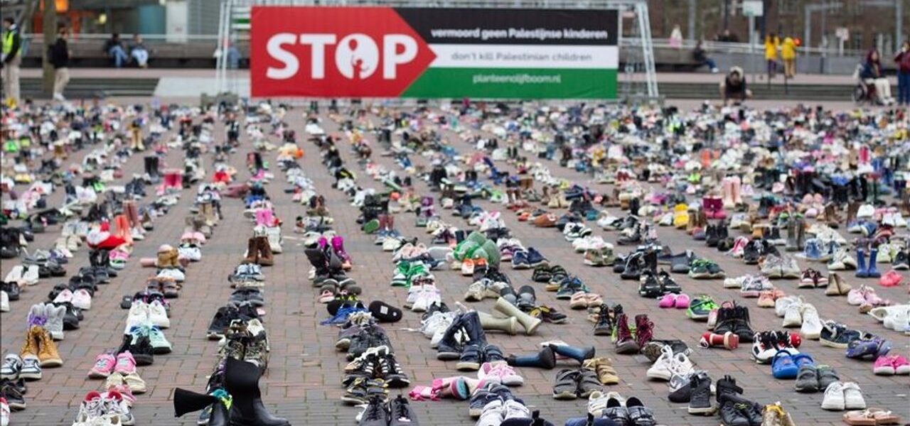 Rotterdam’da Gazze’deki Çocukların Anısına Ayakkabı Eylemi
