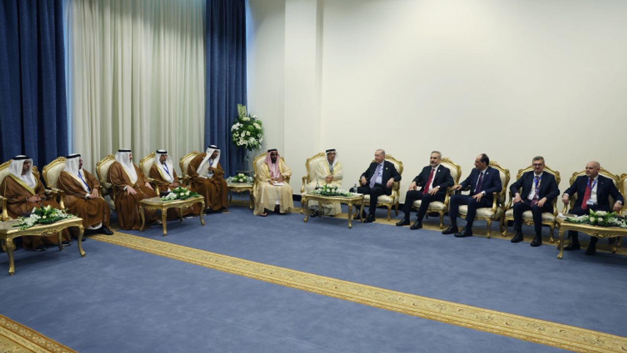 Erdoğan, zirve öncesinde ilk olarak Birleşik Arap Emirlikleri (BAE) Veliaht Prensi Mansur bin Zayid Al Nahyan ile bir araya geldi.