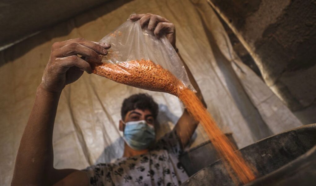 Gazzeliler, Bakliyat Ve Hububat Öğüterek Ekmek Yapıyor