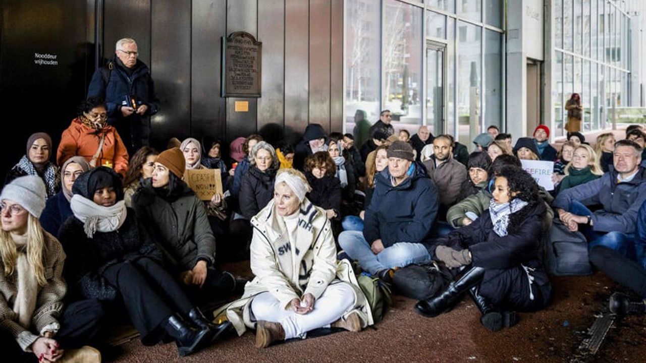Hollanda’da yüzü aşkın kamu çalışanı ve bürokrat, Dışişleri Bakanlığı binası önünde oturma eylemi düzenleyerek, Gazze’de ateşkes sağlanmasını istedi.