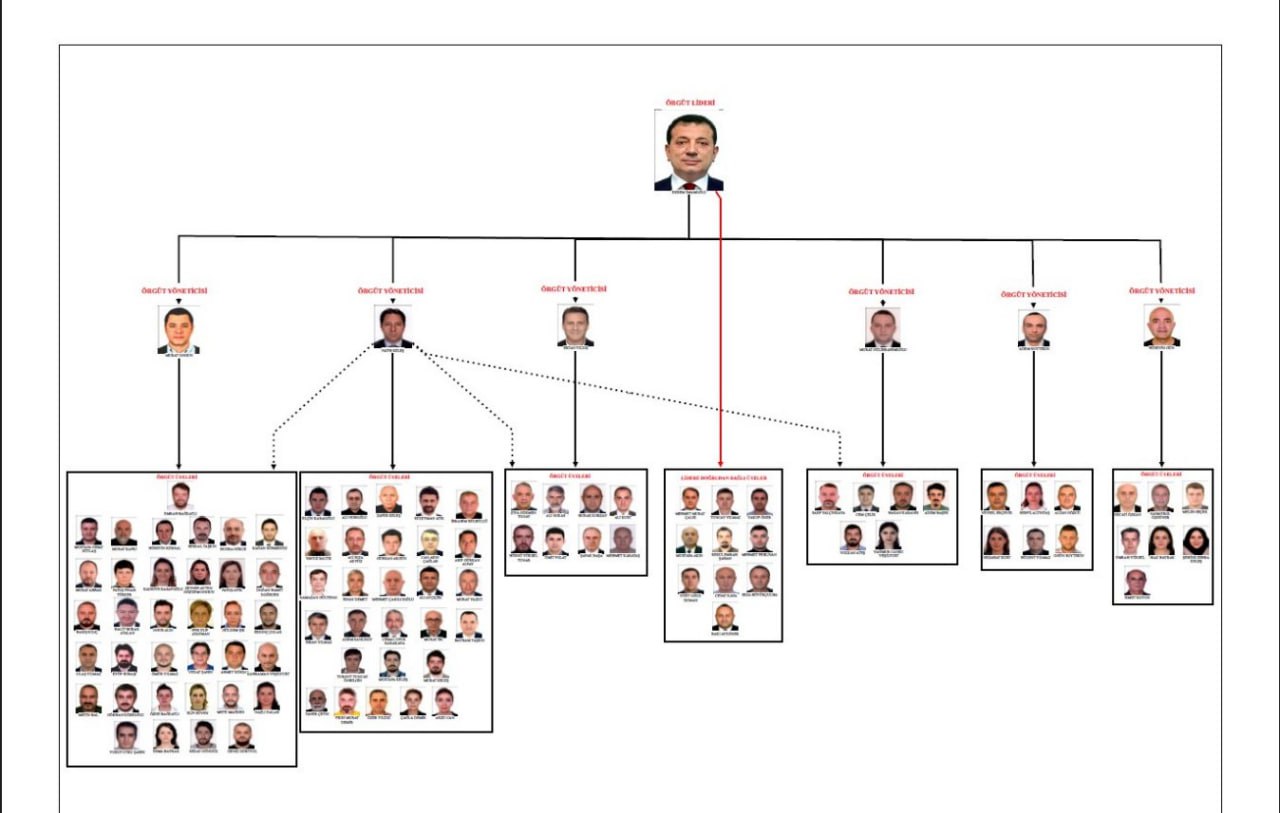 Savcıya göre "Ekrem İmamoğlu Çıkar Amaçlı Suç Örgütü"nün şeması.