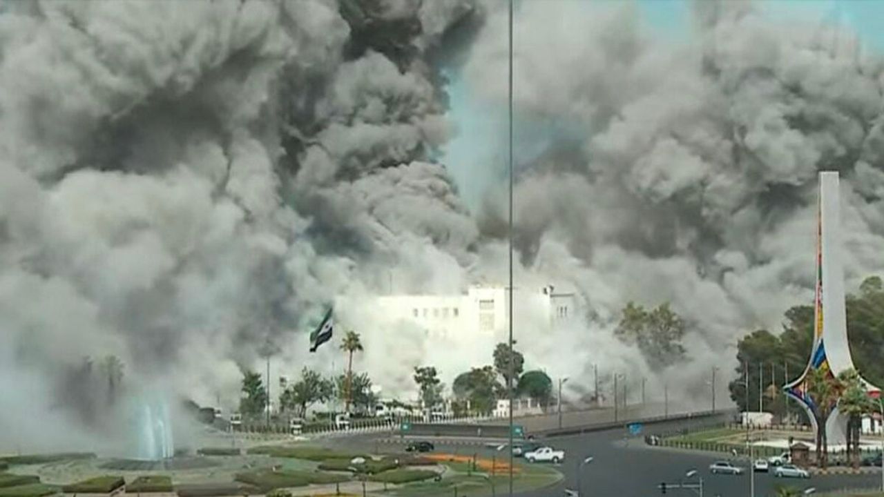 İşgalci İsrail savaş uçakları, Suriye’nin başkenti Şam’da Cumhurbaşkanlığı yerleşkesini hedef alan hava saldırıları düzenledi.