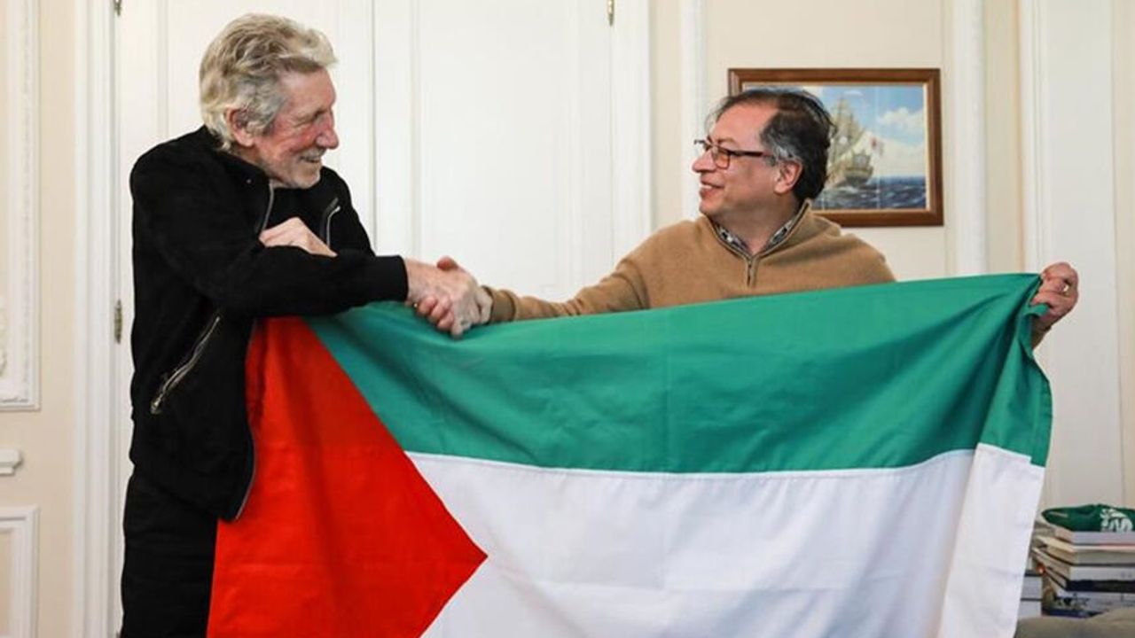 Kolombiya’nın başkenti Bogota’da, ünlü müzisyen Roger Waters, Devlet Başkanı Gustavo Petro ile bir araya geldi. Waters, bu özel görüşmede Gazze’deki duruma dikkat çekmek amacıyla Petro ile dev bir “Filistin” bayrağı açtı. Bu buluşma, Waters’ın uzun süreli politik aktivizmini ve Filistin halkına olan desteğini yansıtıyor.